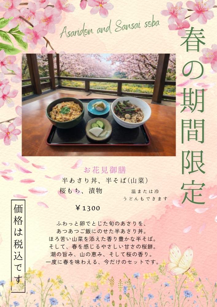 ◎半あさり丼、半山菜そば、桜もち、漬物